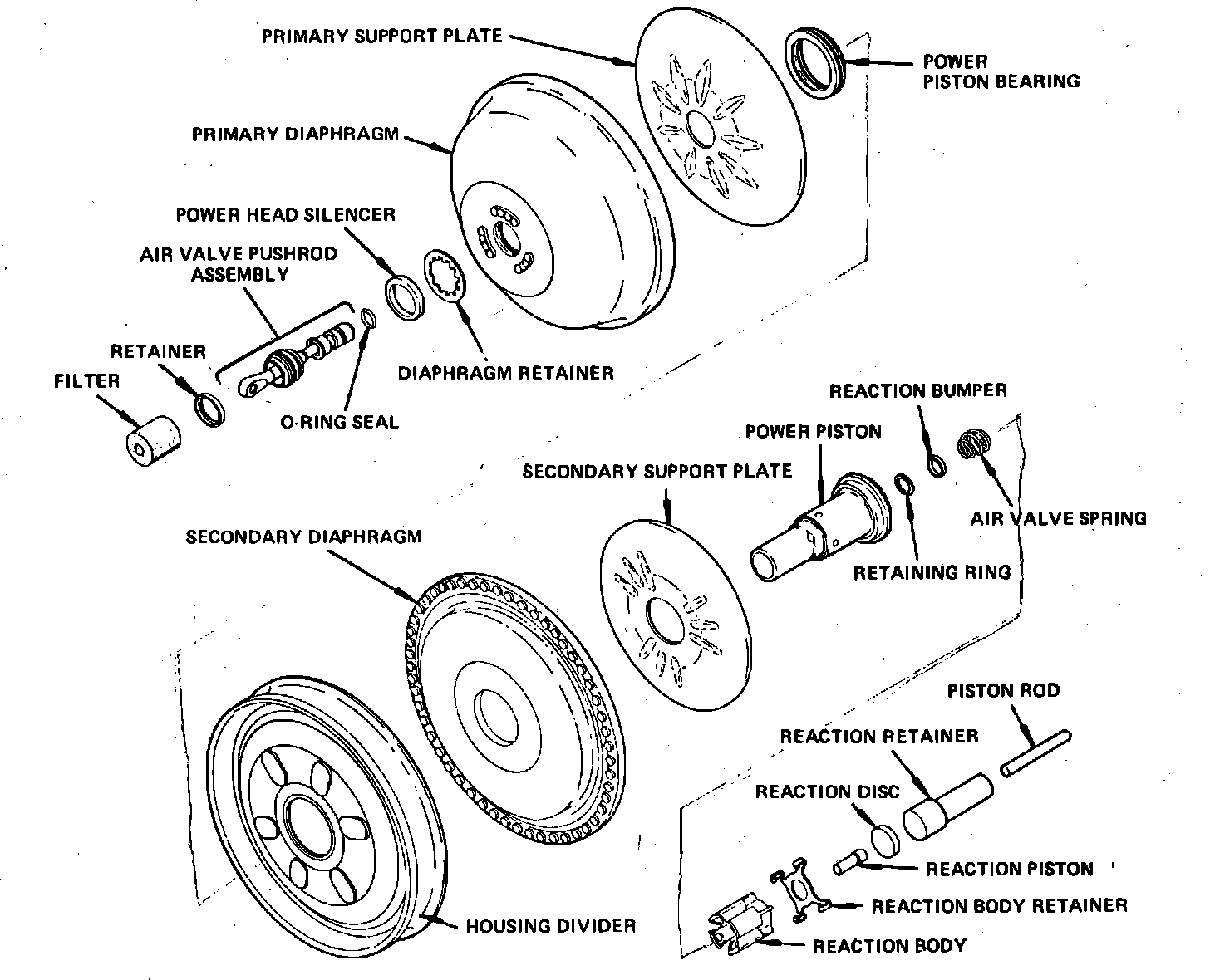 Fig. 4 Delco Moraine tandem diaphragm power piston assembly exploded view: