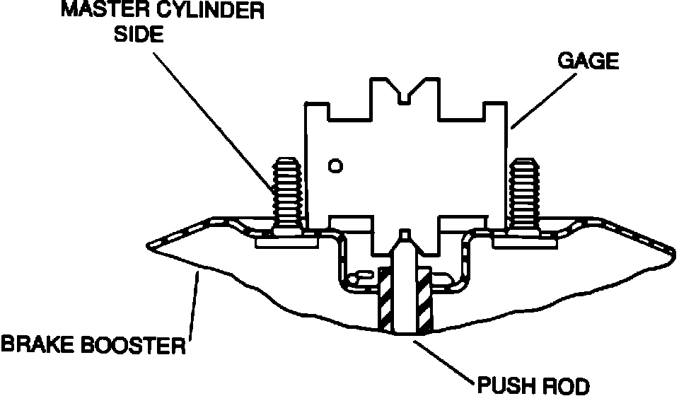 1. The new gage locates on the chamfered sides of the booster push rod rather than the top of the rod. This is a more accurate reference point because the push rod sides initiate the contact with the master cylinder primary piston (See Figure 1).