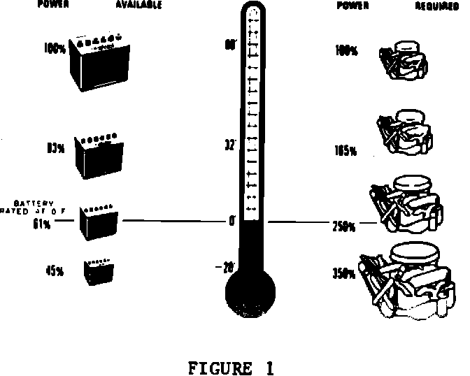 Figure 1 shows what happens to available battery power and the power required to start the engine at different outside temperatures.