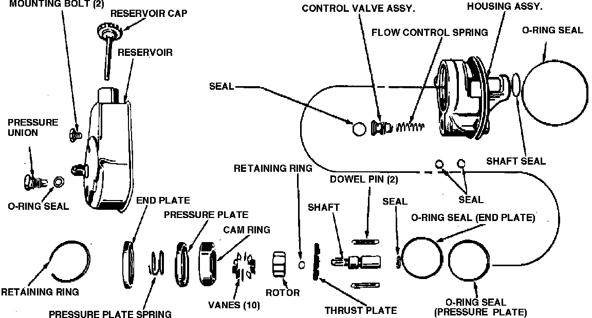 Fig. 1 Vane type power steering pump w/integral reservoir disassembled (typical):