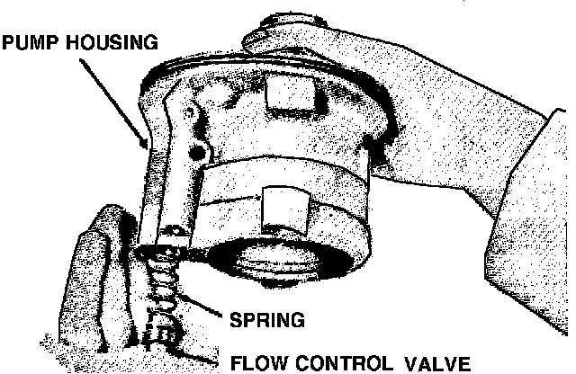 7. Remove flow control valve and spring by inverting housing. Do not disassemble flow control valve as it is serviced as a unit and pre-set at the factory, Fig. 3.