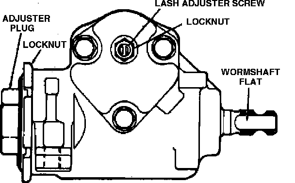 There are two adjustments on the steering gear: worn bearing preload and pitman shaft overcenter preload. Prior to adjusting the steering gear, all outside loads must be removed.