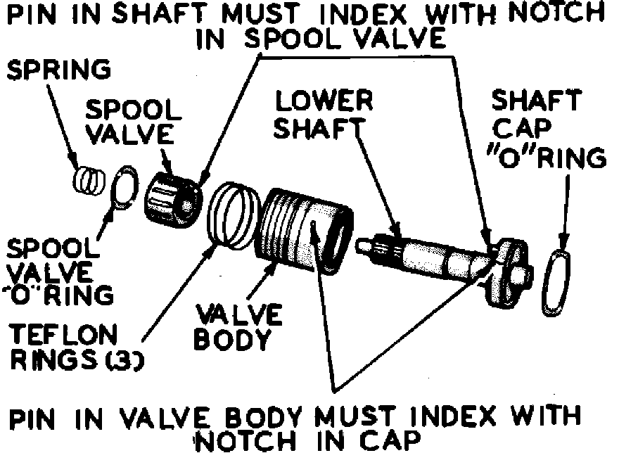 5. With notch end of spool towards valve body, install spool, aligning spool notch with pin in stub shaft, Fig. 8.