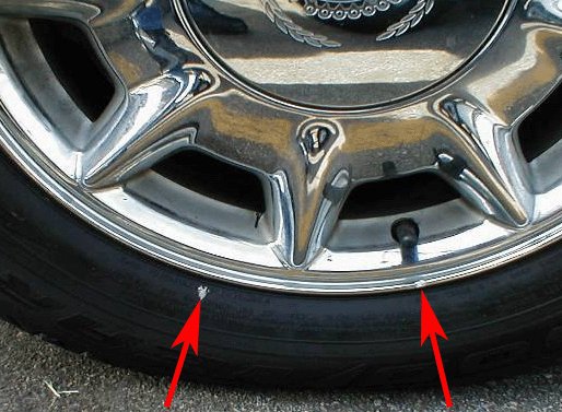 12. Test drive the vehicle to confirm the ride disturbance has been corrected. Confirm that the mark on the tire is still aligned with the valve stem locations and remove the temporary mark. The above photo shows the possible amount of slip.