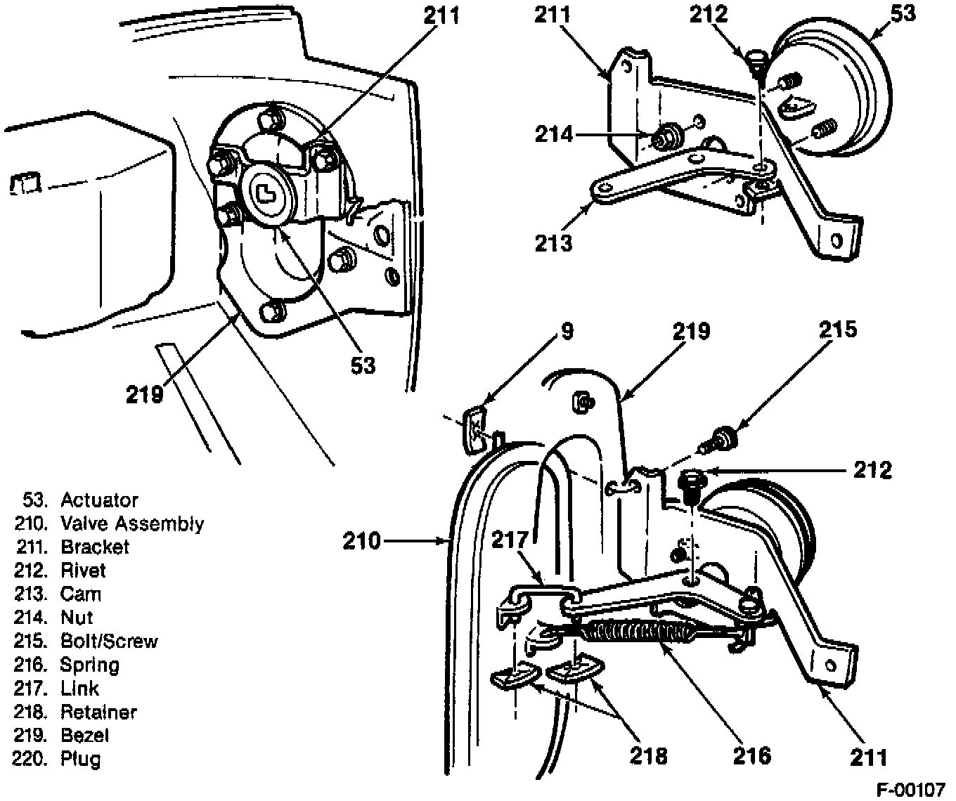1. Actuator to the bracket (53).