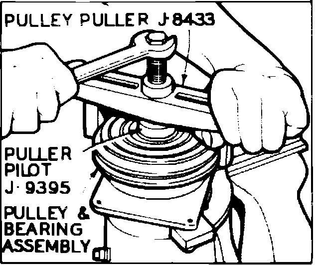 3. Place puller pilot Fig. 20, over end of shaft. It is important that puller pilot be used to prevent internal damage to compressor when removing pulley. Puller should never be used directly against drilled end of shaft.
