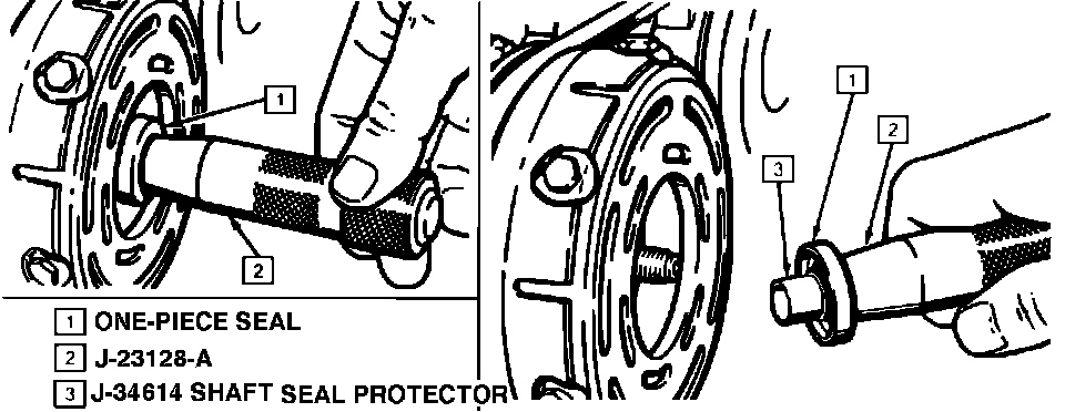 3. Remove shaft seal seat with tool J-23128-A, then the shaft seal with tool J-9392, Fig. 6.
