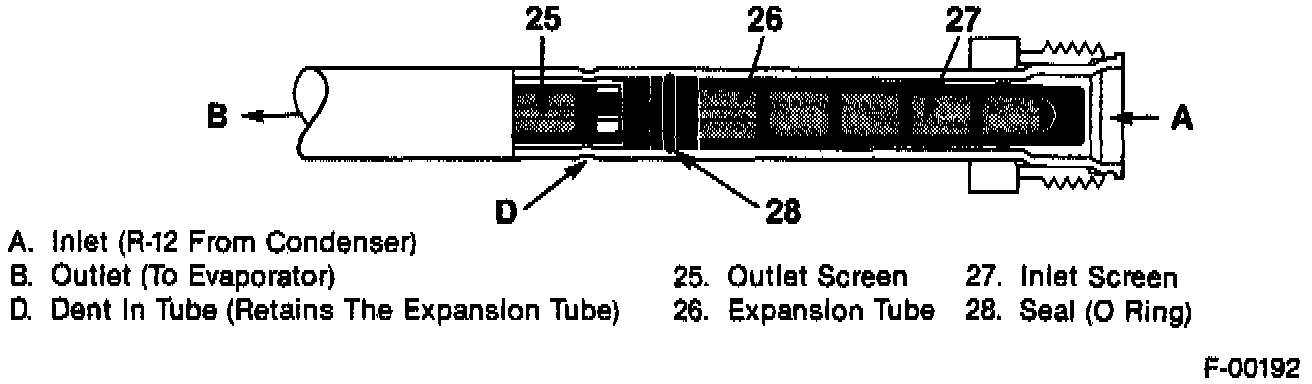 NOTE: The expansion tube is located in the evaporator core inlet line.