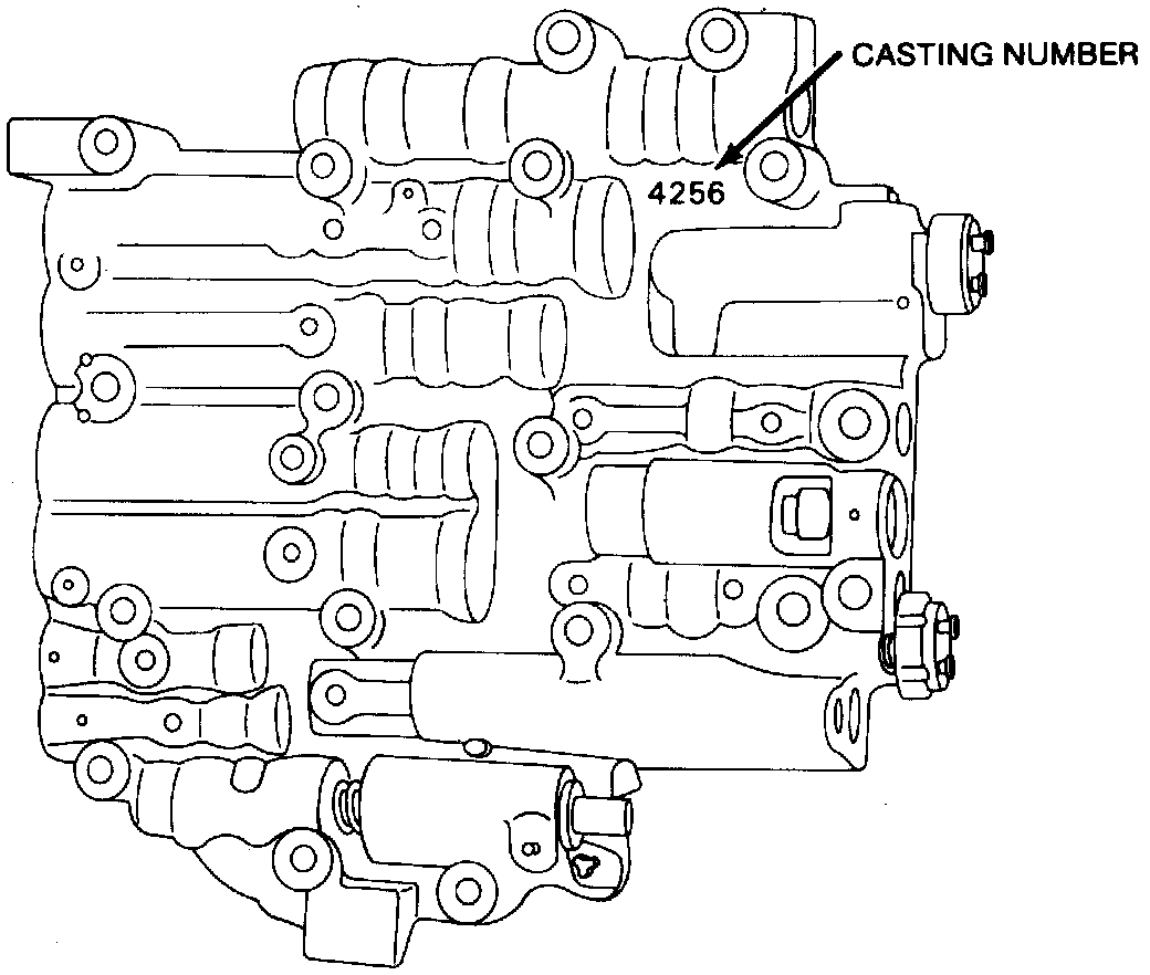 3. Remove detent spring and roller assembly from valve body and remove valve body to case bolts.