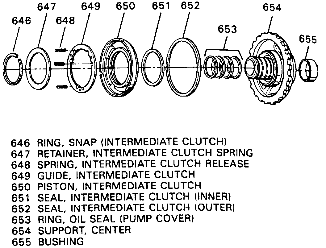 5. Remove inner and outer seals from clutch piston. Do not remove three screws holding holding roller clutch race to center support.