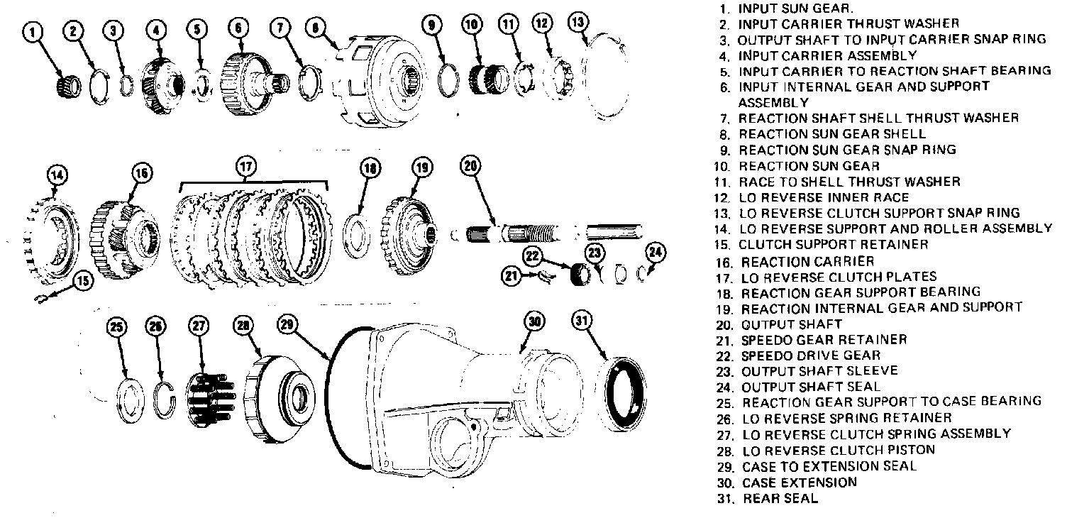 1. Remove converter from transmission, then install transmission in a suitable holding fixture.