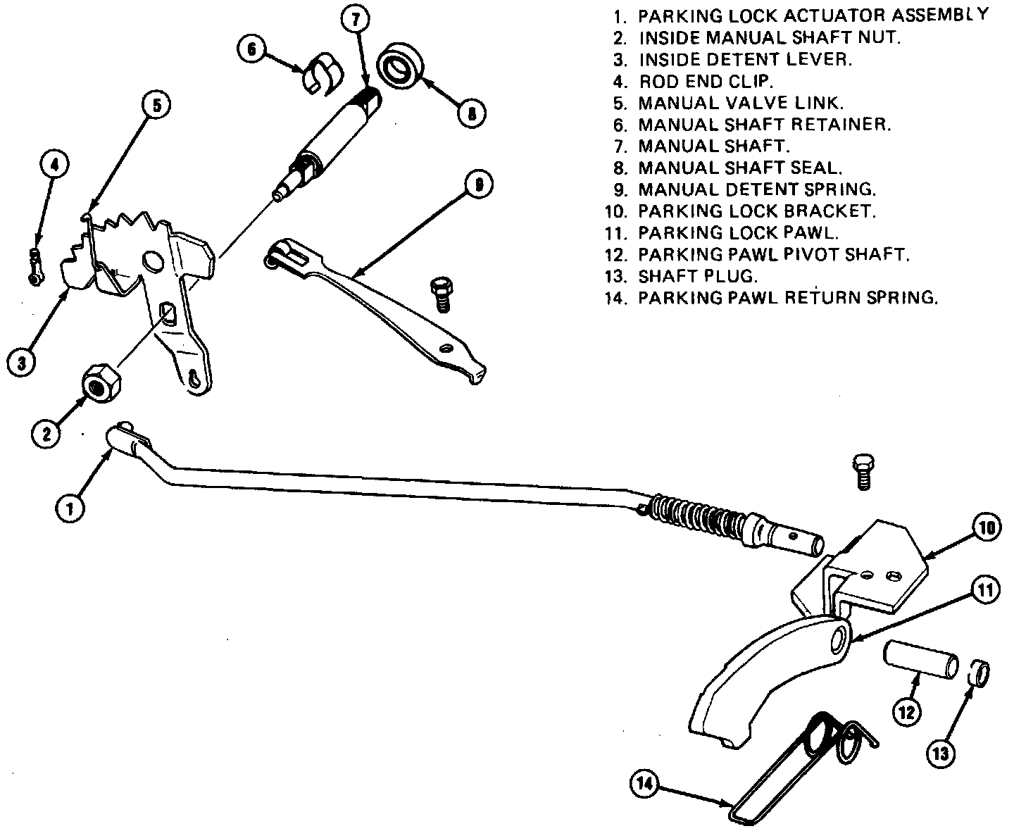 17. Remove parking lock bracket attaching bolts and bracket.