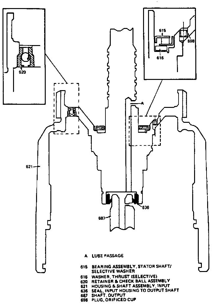 15. Inspect input housing to output shaft lip seal for damage or wear.