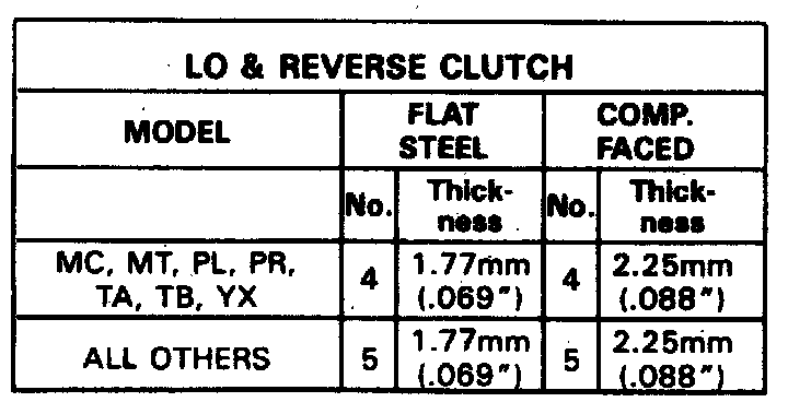 a. Install steel plate and alternate with composition plate, refer to the image for correct number of plates to be used. To install the new lo and reverse clutch assembly components and for proper selection of the lo and reverse selective backing plate, proceed as follows: