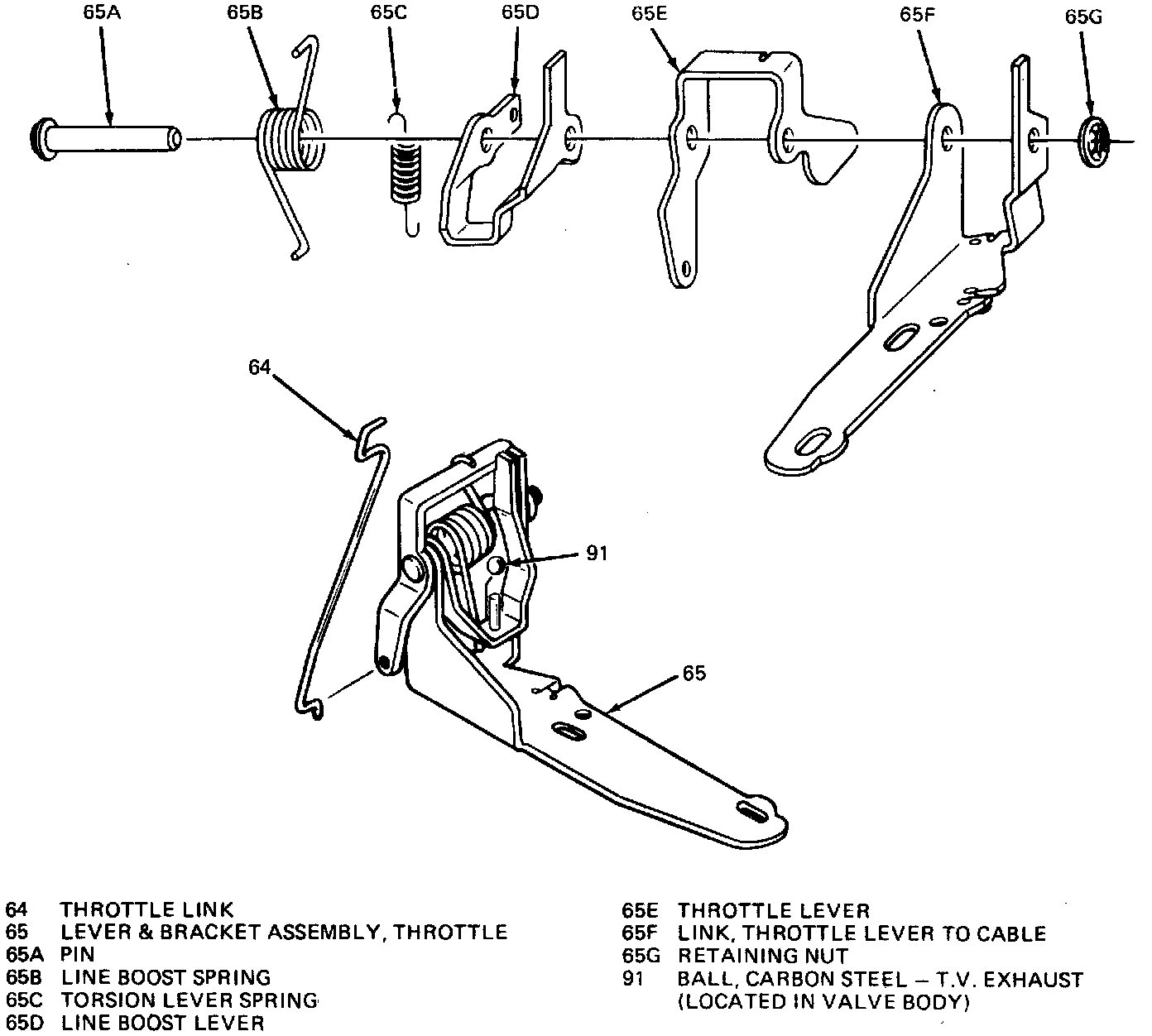 11. Install T.V. link onto the T.V. lever and bracket, then the T.V. lever and bracket assembly onto the valve body as shown in Figure.