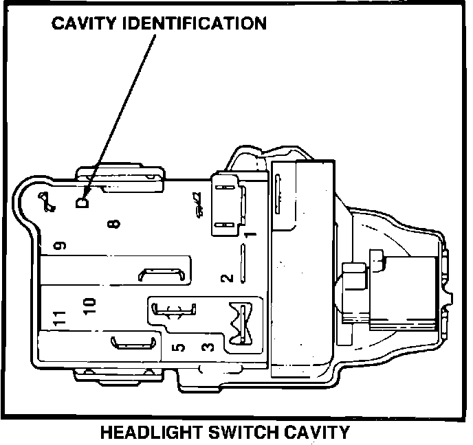 1. After removing the headlight switch from the instrument panel, refer to the illustration to locate and identify the cavity code.