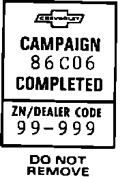 Each vehicle modified in accordance with the instructions outlined in this Product Campaign Bulletin will require a "Campaign Identification Label." Each label provides a space to include the five digit dealer code of the dealer performing the campaign service. This information may be inserted with a typewriter or ballpoint pen.