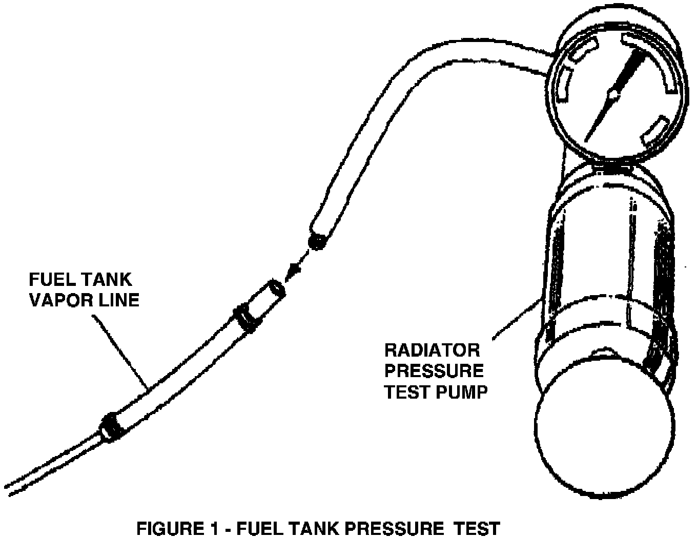 5. Pressurize fuel tank system to 1-2 psi. Note position of radiator pressure test pump gauge needle.