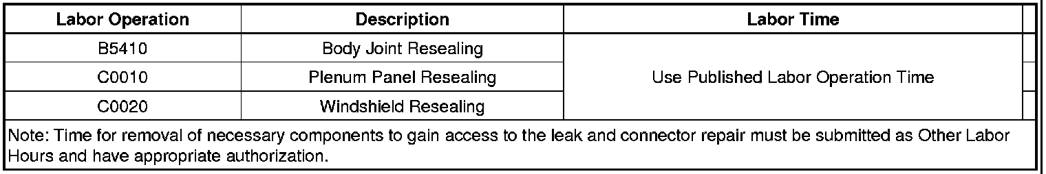 For vehicles repaired under warranty, use the appropriate labor operation for the source of the water leak