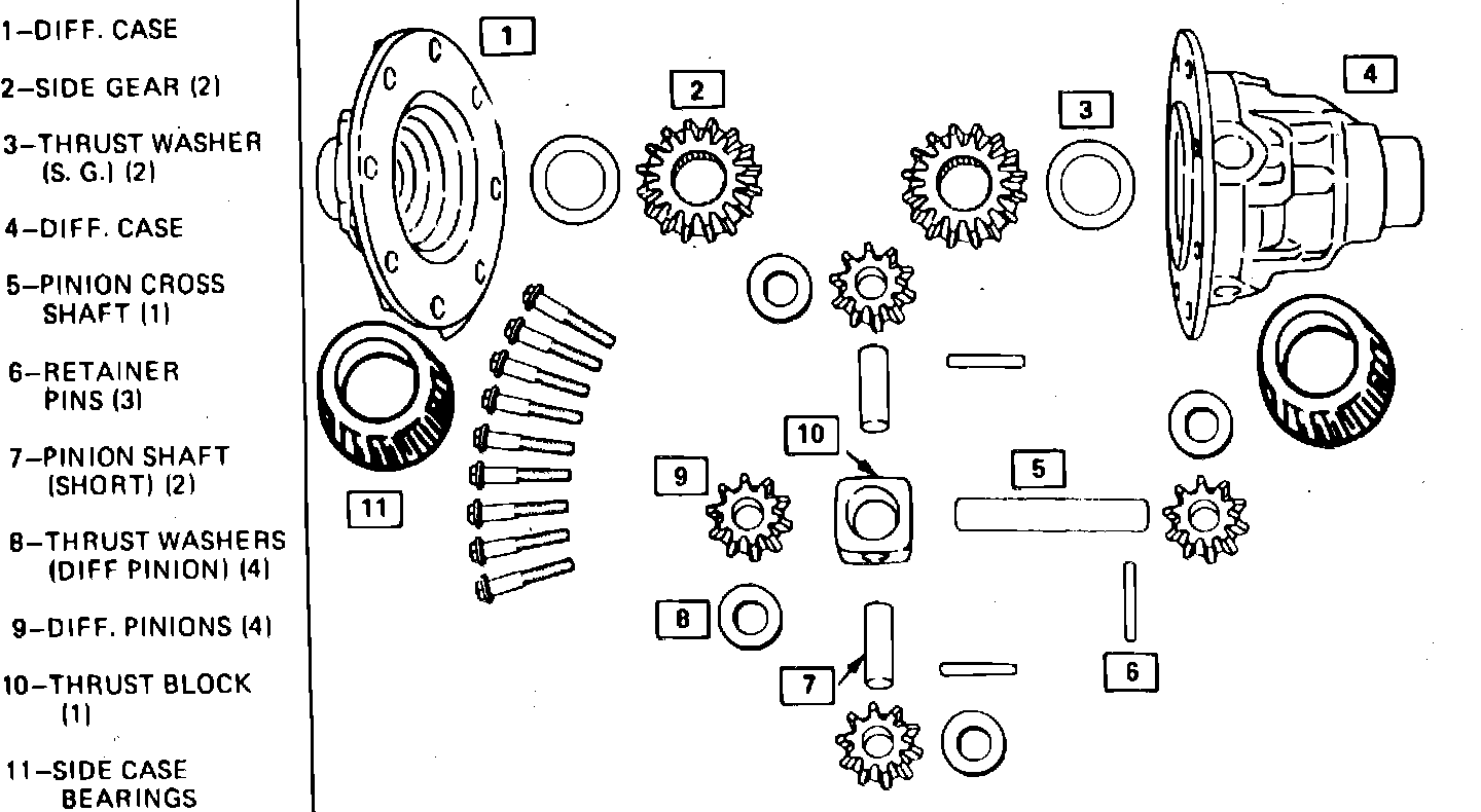 Fig. 1 Exploded view of Borg Warner 4 pinion standard differential: