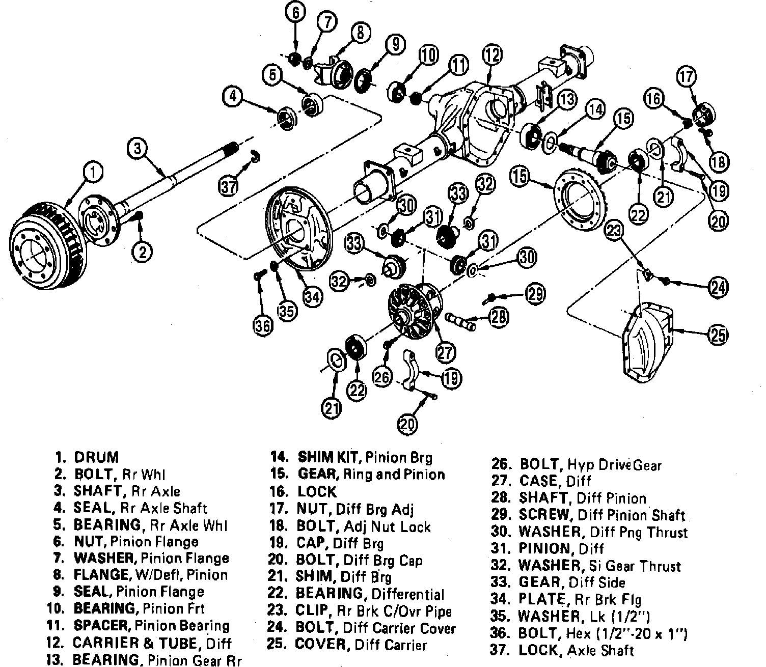 Fig. 1 Chevrolet 9-1/2 inch semi-floating drive axle w/standard differential exploded view. Full floating models similar:
