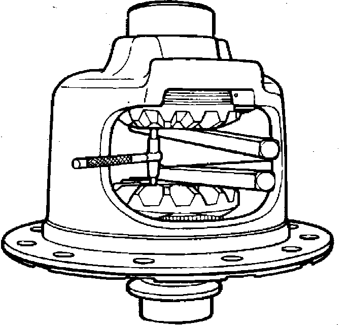 5. Select thrust block of a thickness zero to .006 inch less than dimension measured in step 4. Original thrust block can be reused if it is undamaged and will provide the specified zero to .006 inch clearance. Right side gear can also be reshimmed to obtain specified thrust block clearance, as long as specified .002-.010 inch backlash between side gear and differential pinions is maintained.
