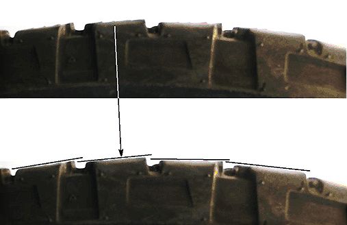 Figure 4: Detail Side View of Tire Shoulder Area - "NORMAL" Tire "Feathering" Wear