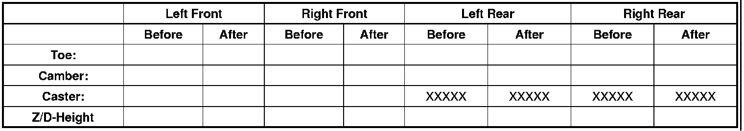 - Document the "Before" AND "After" wheel alignment measurements/settings.