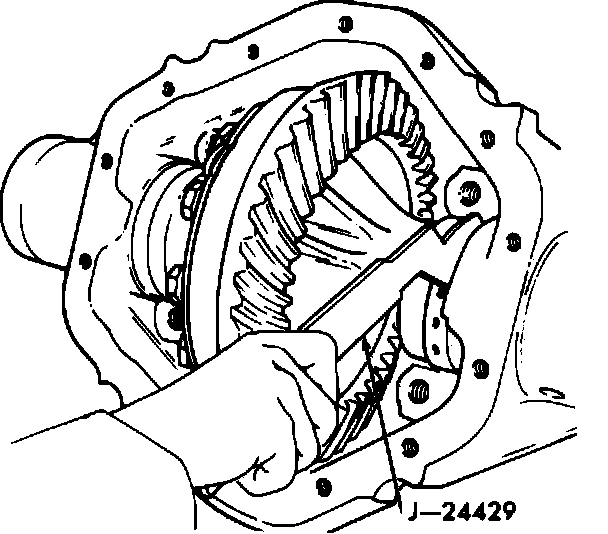 12. Apply braking force to ring gear, then turn pinion to rotate ring gear one revolution in each direction. Accurate contact pattern cannot be obtained unless gears are ``loaded'' when rotated.
