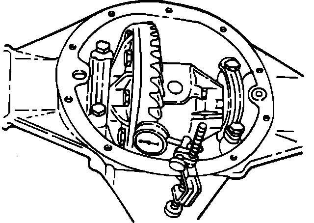 8. Hold pinion and rock ring gear back and forth, observing backlash on dial indicator.