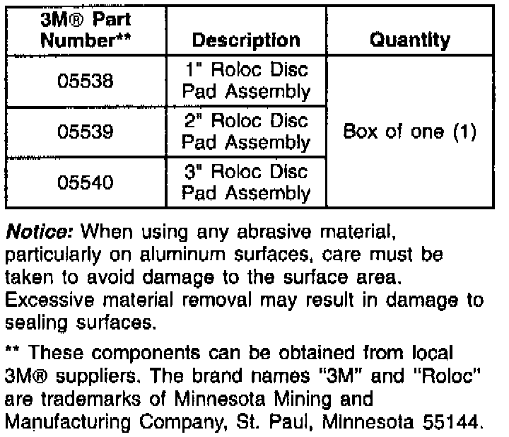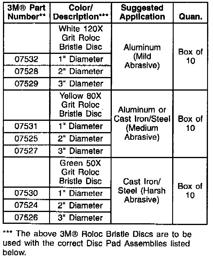 The Discs (see Figure 1 - 3M(R) Roloc Disc Identification) are available in different grit levels, with suggested applications as shown:
