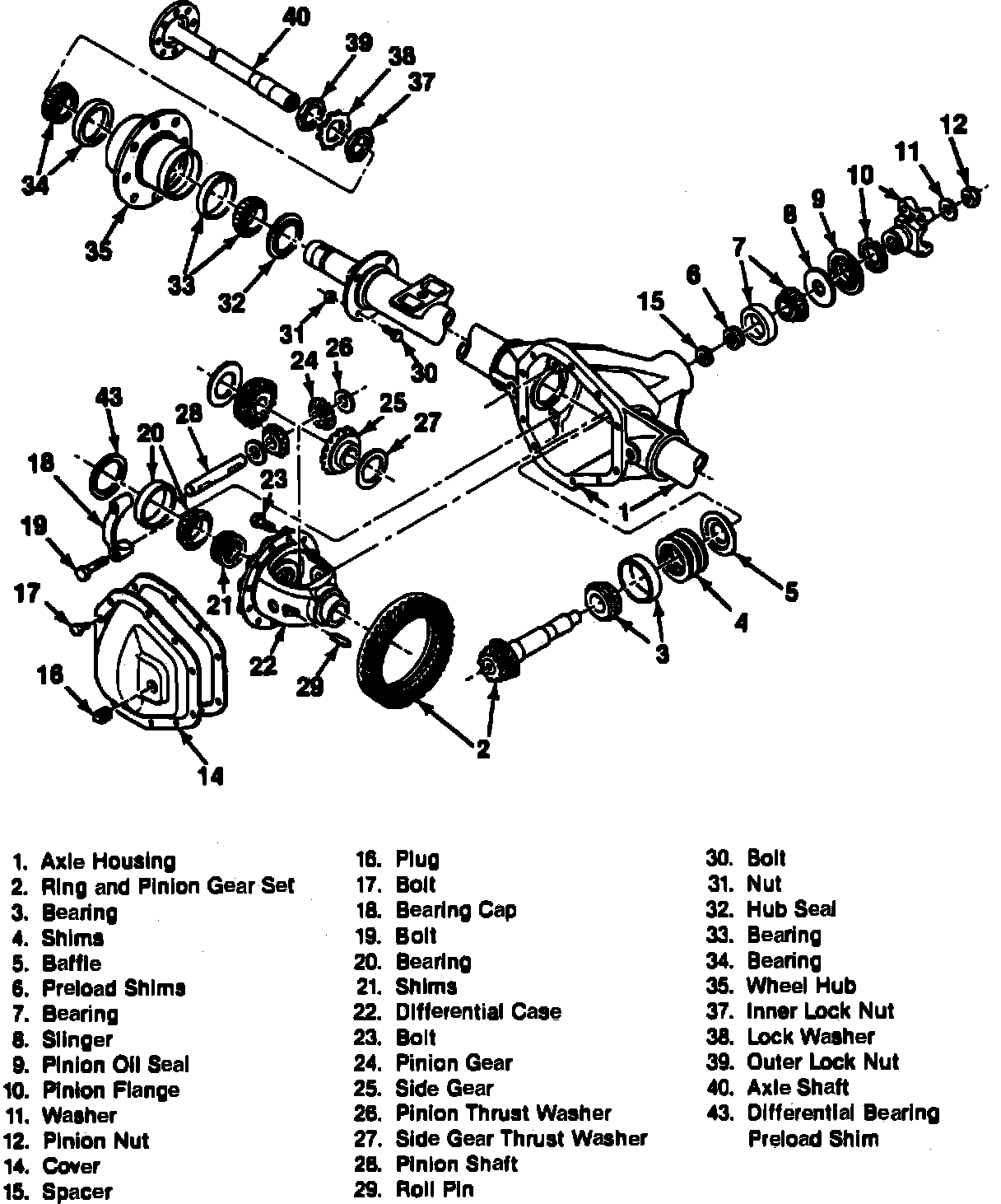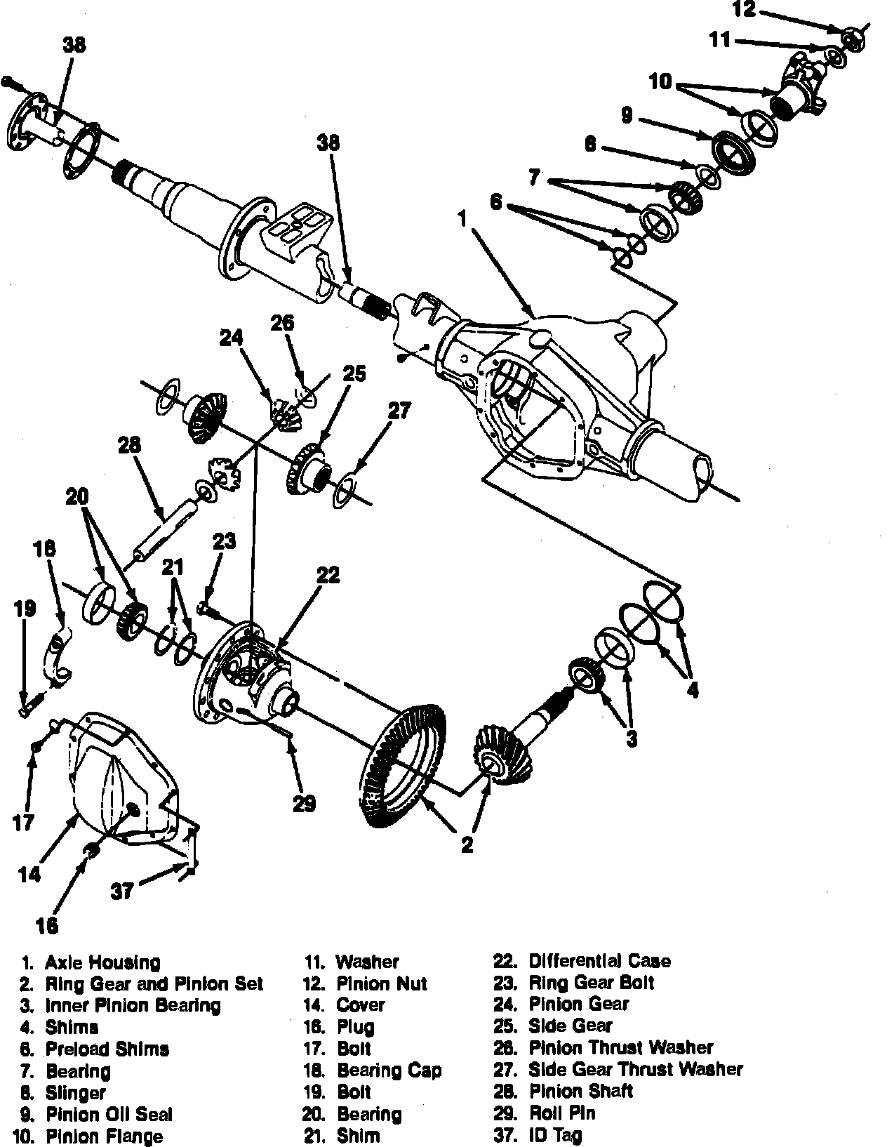 Fig. 1 Exploded View Of Dana Rear Drive Axle With 10 1/2 Inch Ring Gear: