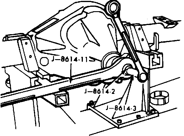 8. Install holder tool No. J-8614-11 or equivalent on flange using two bolts and flat washers. Position tool with four notches toward flange, then remove and discard pinion nut and washer.