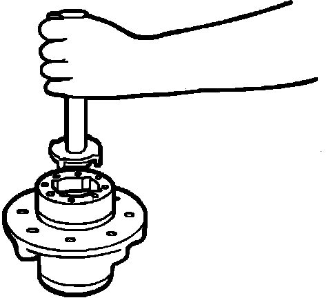 1. Using a hammer and suitable drift, drive inner bearing, cup and seal from hub assembly.