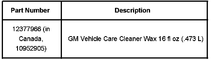 In all cases, the returned wheels could be cleaned to their original condition using GM Vehicle Care Cleaner Wax, P/N 12377966 (in Canada, P/N 10952905). When using this product, you should confine your treatment to the areas of the wheel that show evidence of the brake dust build-up. This product is only for use on chromed steel or chromed aluminum wheels.