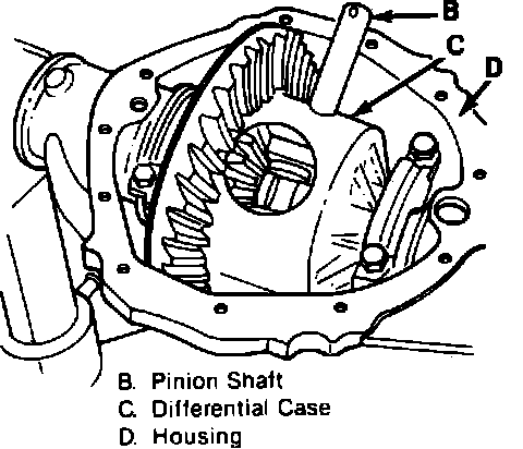 a. On models less locking differential, remove pinion shaft from case.