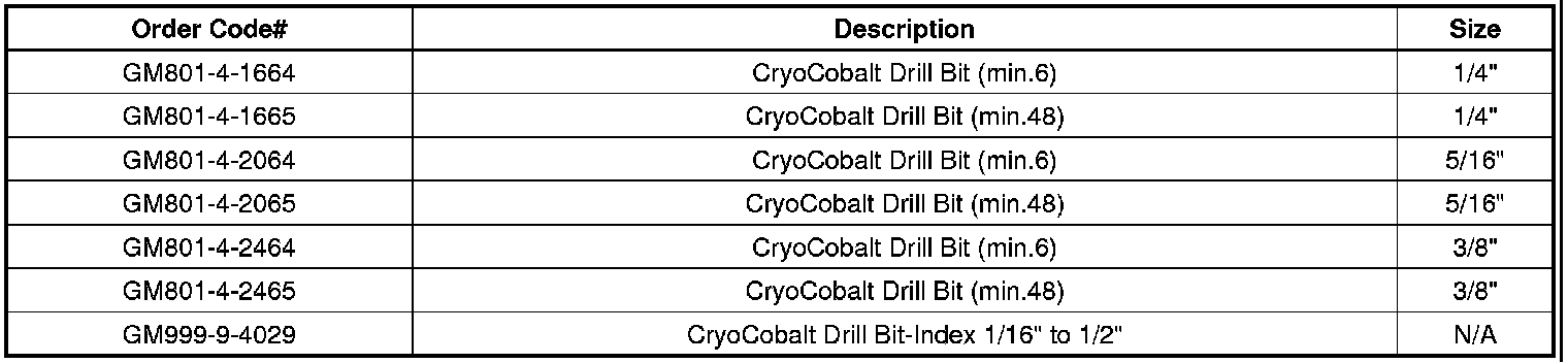 These drill bits are available directly from the manufacturer. Refer to the ordering information below.