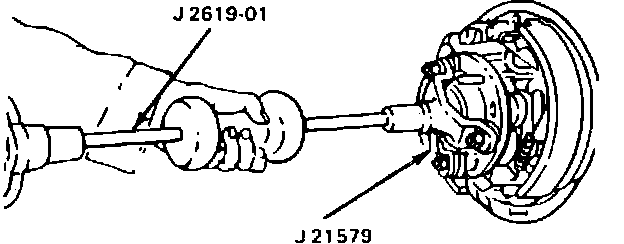 4. Using puller and adapter J-21579 and J-2619-01 or equivalent, pull axle shaft from housing, Fig. 1.