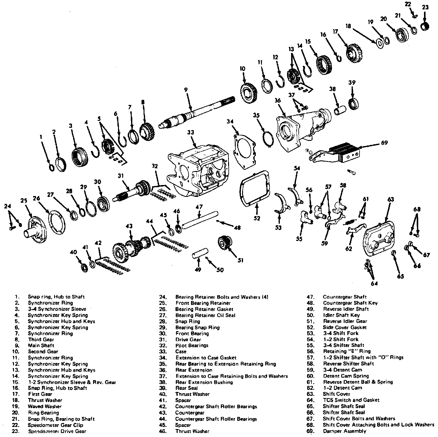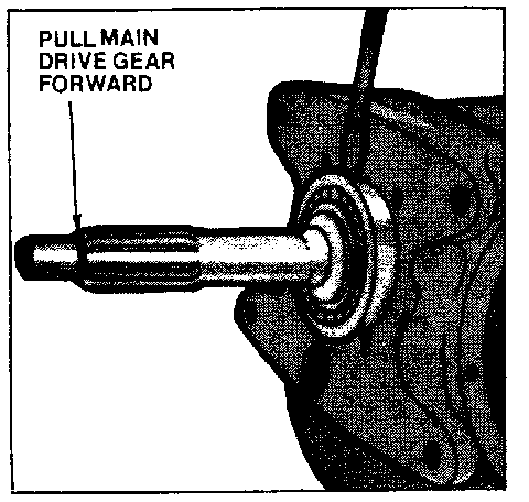 1. Remove side cover assembly and shift forks. Remove damper assembly which is bolted to extension housing, if equipped.