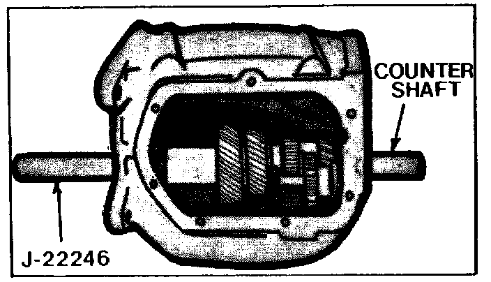 6. Using a dummy shaft, drive counter- shaft and woodruff key out through rear of case. Dummy shaft will hold roller bearings in position within countergear bore. Remove countergear.
