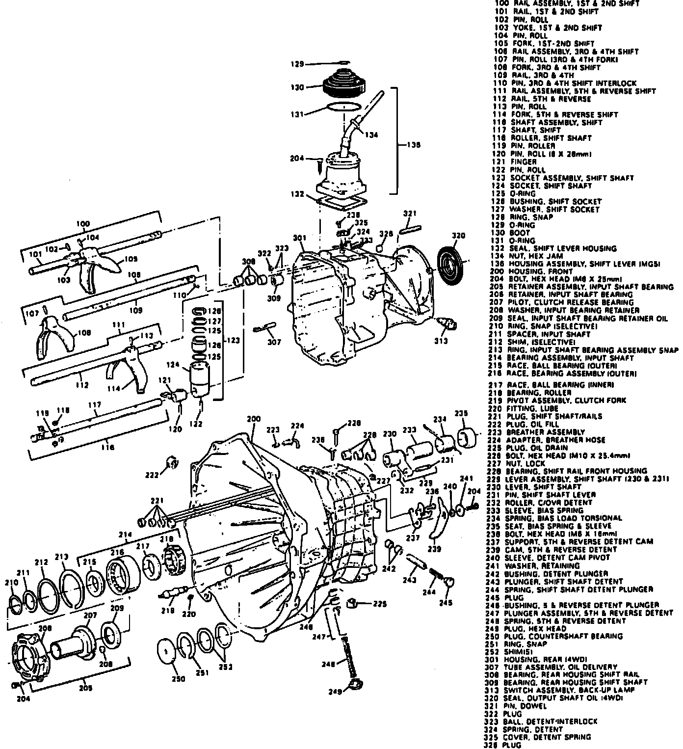 Fig. 4 Four Wheel Drive Transmission Shift Mechanism And Case Components: