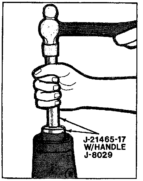 2. Press in new bushing using tool No. J-21465-17 and J-8092.