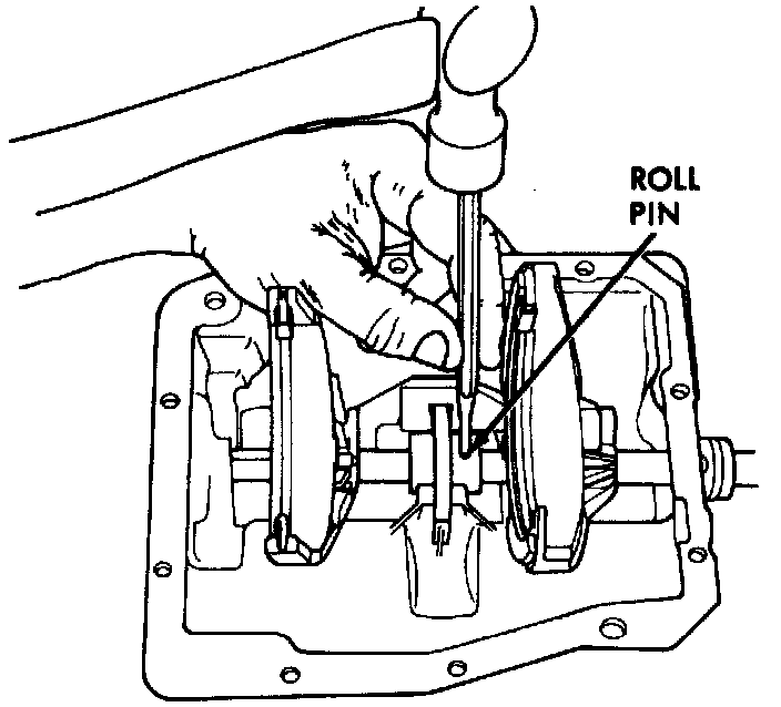 7. Align roll pin holes in selector arm and shift rail and install roll pin.