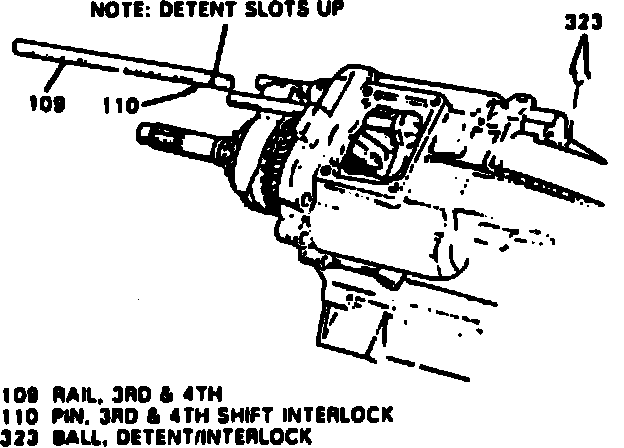 b. Ensure that detent slots in 3-4 shift rail are up.