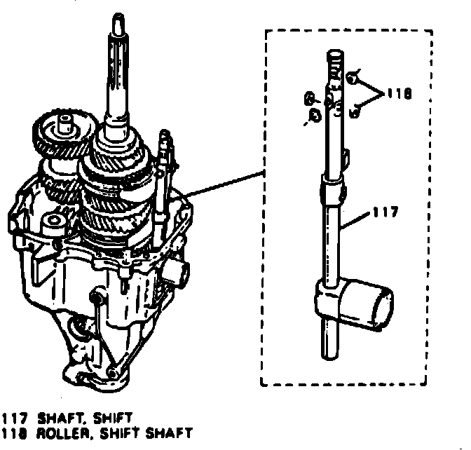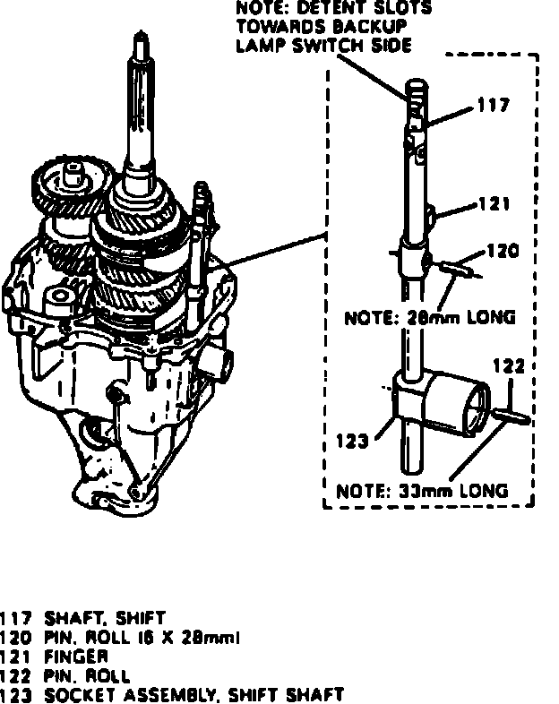 29. Install shift shaft (116), finger (121) and shift shaft socket assembly (123), Fig. 14.