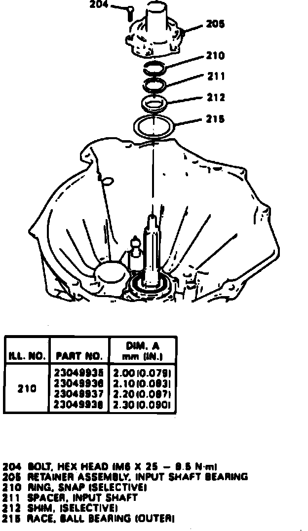 39. Install shim (212) into input shaft bearing retainer assembly (205). Ensure that input bearing retainer washer (208) is in place. Retain with petroleum jelly.