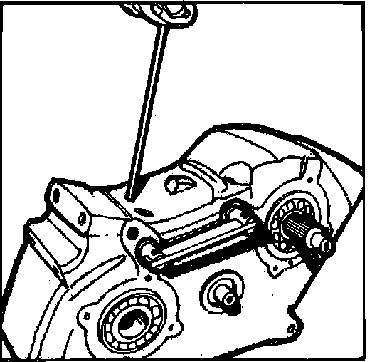 19. Tip case on power takeoff opening and remove two interlock pins from inside of case.