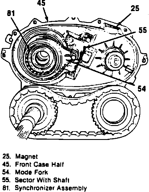 13. Remove synchronizer assembly, then drive sprocket from mainshaft.