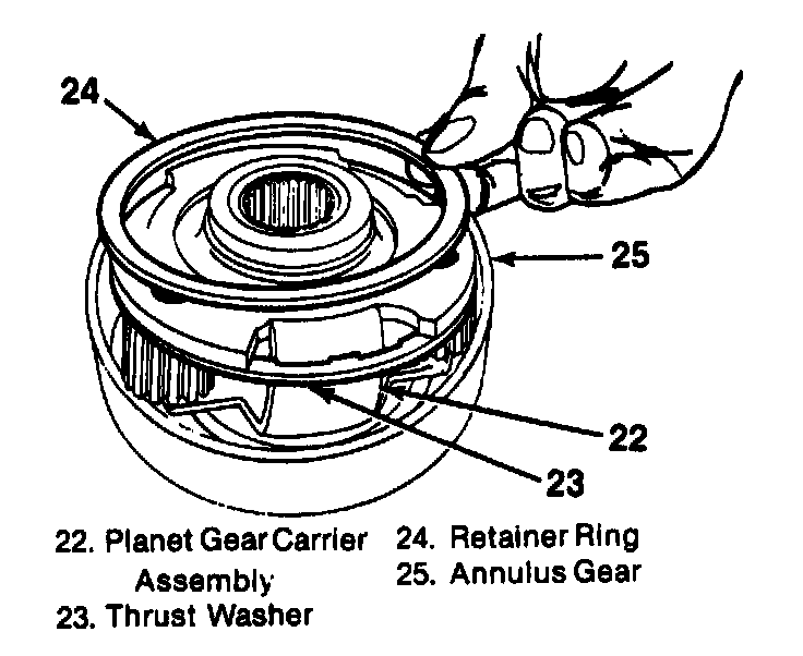 4. Inner thrust ring (23) from the planetary assembly. Discard the ring.