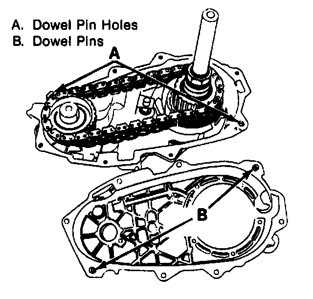 - Install the two bolts with washers into the dowel pin holes. Tighten the bolts to 31 Nm (23 ft. lbs.)